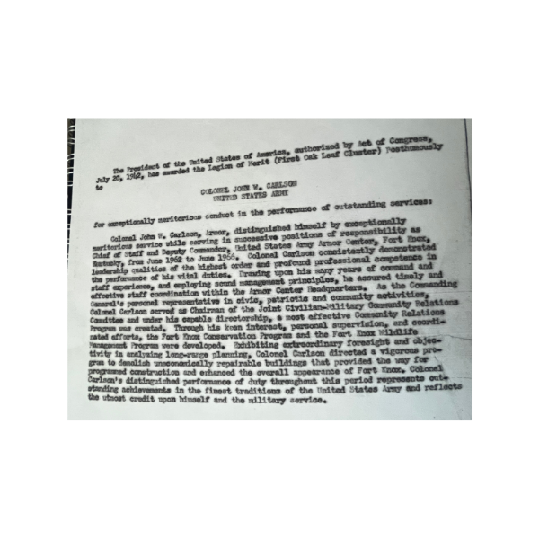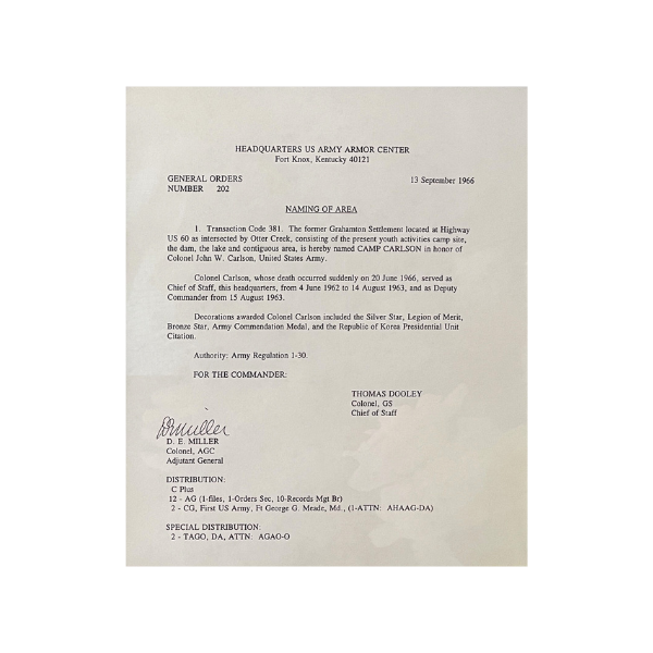 - Namesake: Camp Carlson, Ft. Knox MWR Facility