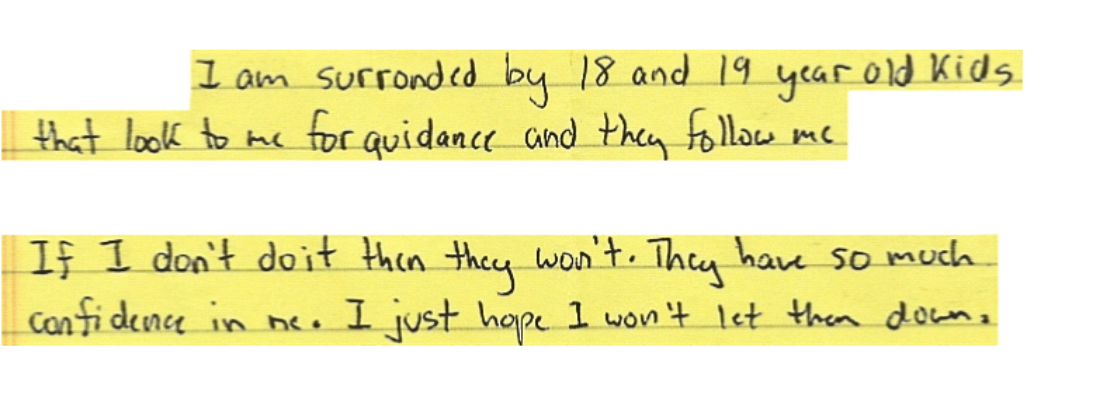 "I am surrounded by 18 and 19-year-old kids who look to me for guidance and follow me.